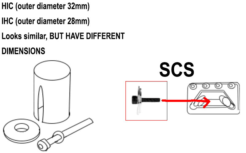 A termék vagy kompressziós készlettel, vagy anélkül kerül forgalomba. A HIC és IHC rendszerek kompressziós készlete egy HIC vagy IHC shim és csavarból áll. Az SCS kompressziós készlete a foglalat része, amelyben a csavar és a mosó közvetlenül a villához rögzíti a foglalatot.